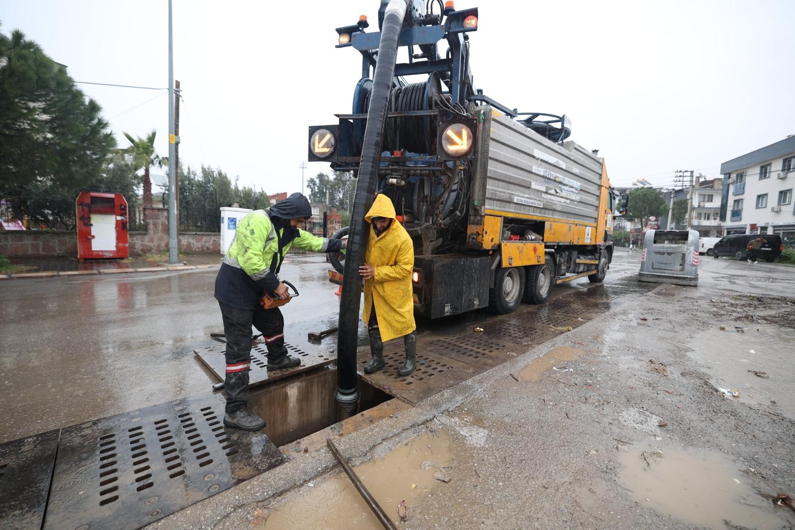 İzmir’de son günlerde etkisini artırarak devam eden sağanak yağışlar nedeniyle, Meteoroloji Genel Müdürlüğü tarafından kent genelinde sarı kodlu yağış uyarısı yapıldı. İzmir Büyükşehir Belediyesi, yağışlara karşı AKOM koordinasyonunda kent genelinde olası olumsuzluklara karşı 412 araç ve iş makinesi, 200 pompa, 1365 personel ile görev başında.