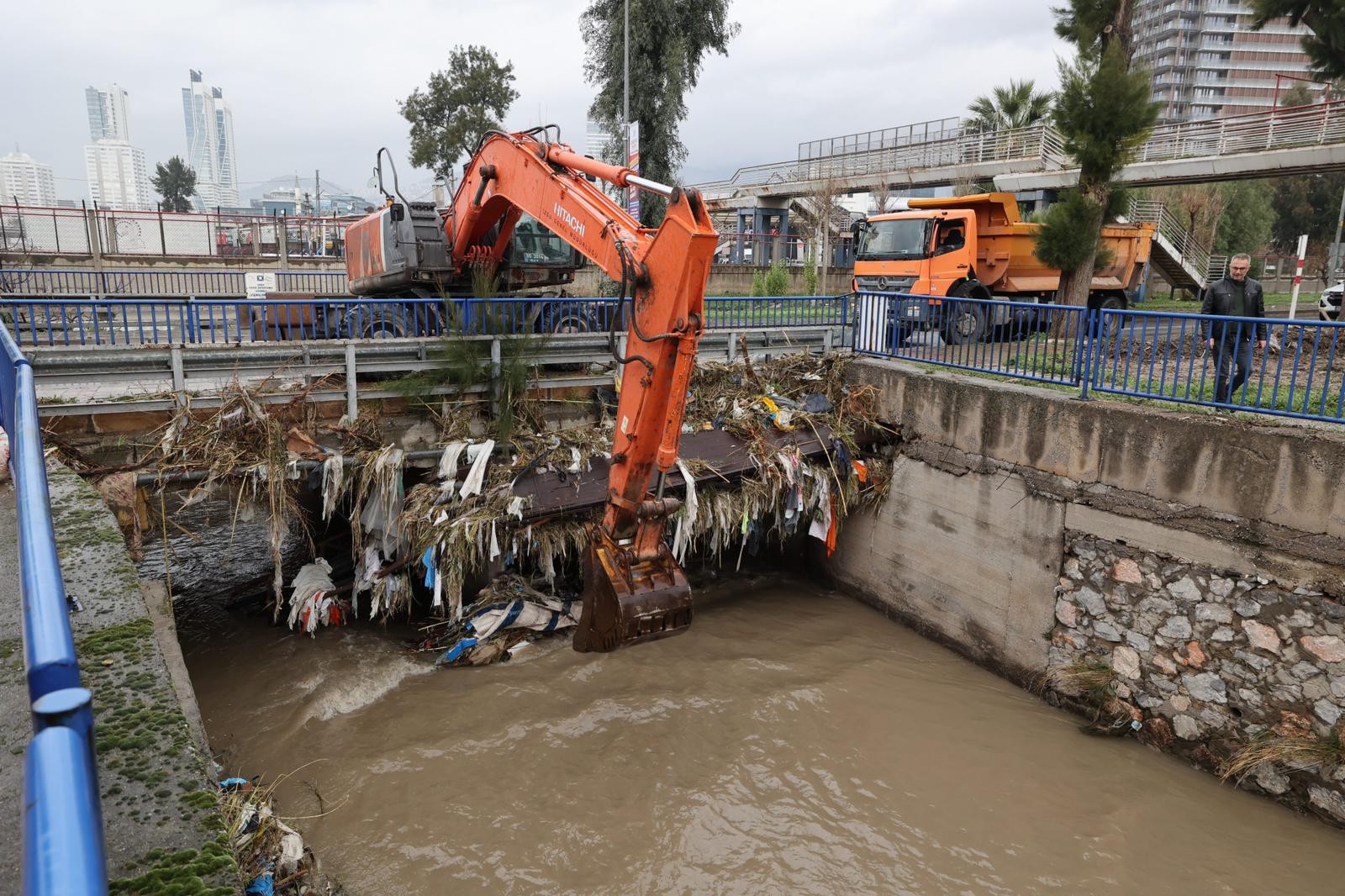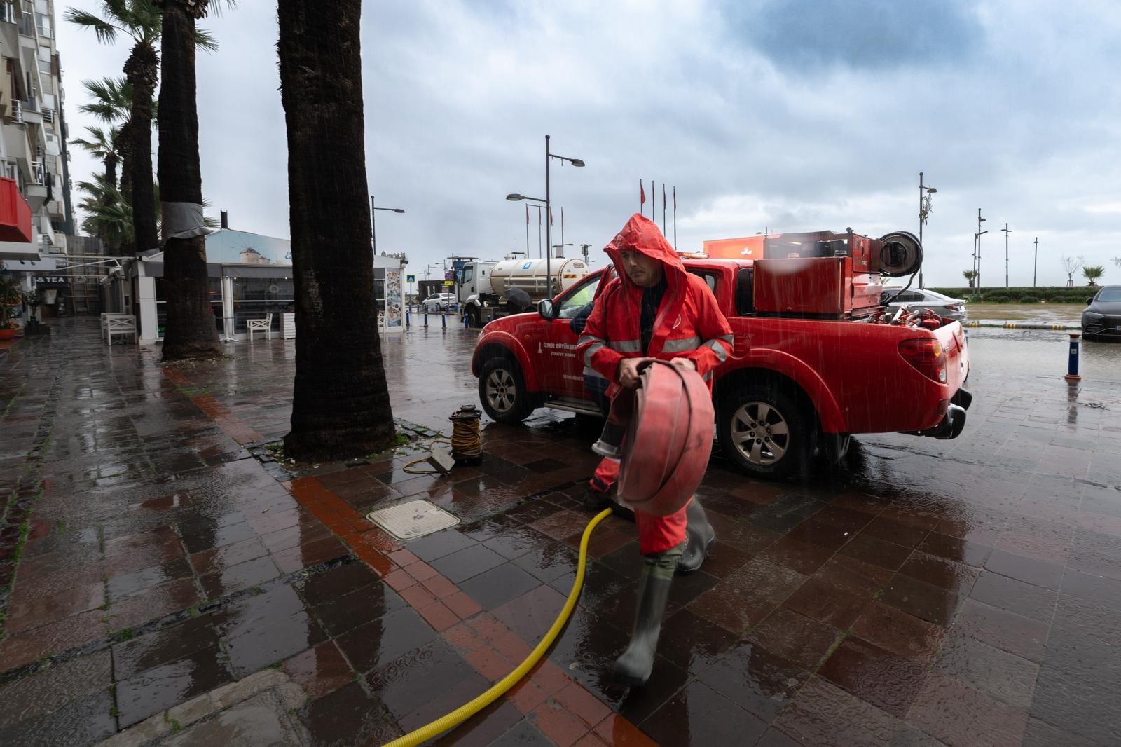 Geçen haftadan itibaren etkisini artırarak gün boyu süren sağanaklar kent genelinde yaşamı etkilerken, İzmir Büyükşehir Belediyesi ekipleri olumsuzlukların önüne geçmek için sahada yoğun mesai yaptı. Büyükşehir Belediyesi, kent merkezi ve çevre yerleşimlerde 1.600 personel ve 500 araçla çalışmalarını aralıksız sürdürdü.