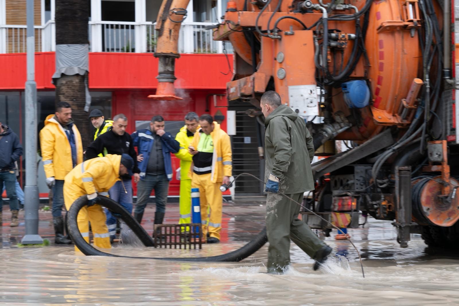 Alsancak 1. Kordon’da gelgit etkisiyle deniz kotunun yükselmesi, yağmur sularının denize deşarjını zorlaştırırken, sahada önleyici çalışmalar hız kesmeden sürdürüldü. İZSU Genel Müdürlüğü ekipleri, sabah saat 05.00’ten itibaren 20 ekip ve tam donanımlı araçlarla bölgede su çekme çalışmalarına aralıksız devam etti. Suların tahliyesi için vidanjör ve pompa sistemleri devreye alındı. İzmir Büyükşehir Belediyesi İtfaiye Dairesi Başkanlığı ekipleri de çalışmalara destek vererek 4 ayrı su çekme ekibiyle, zemin katta bulunan iş yerleri ve konutlarda oluşan su birikintilerine müdahale ediyor. Ekipler, olası yeni dalgalanmalara karşı bölgede teyakkuz halinde bekliyor.